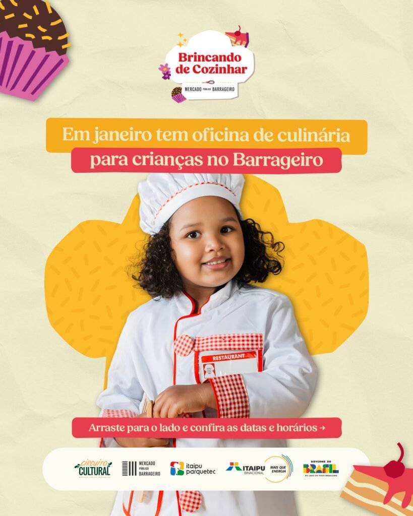 Durante o mês de janeiro, o Mercado Público Barrageiro realiza uma programação especial de oficinas de culinária voltadas para crianças, unindo aprendizado, criatividade e momentos de convivência em família. As atividades acontecem na cozinha do Mercado e propõem experiências práticas, lúdicas e afetivas, sempre com acompanhamento de um responsável. Programação 09/01 (sexta-feira) – Docinhos de […]
