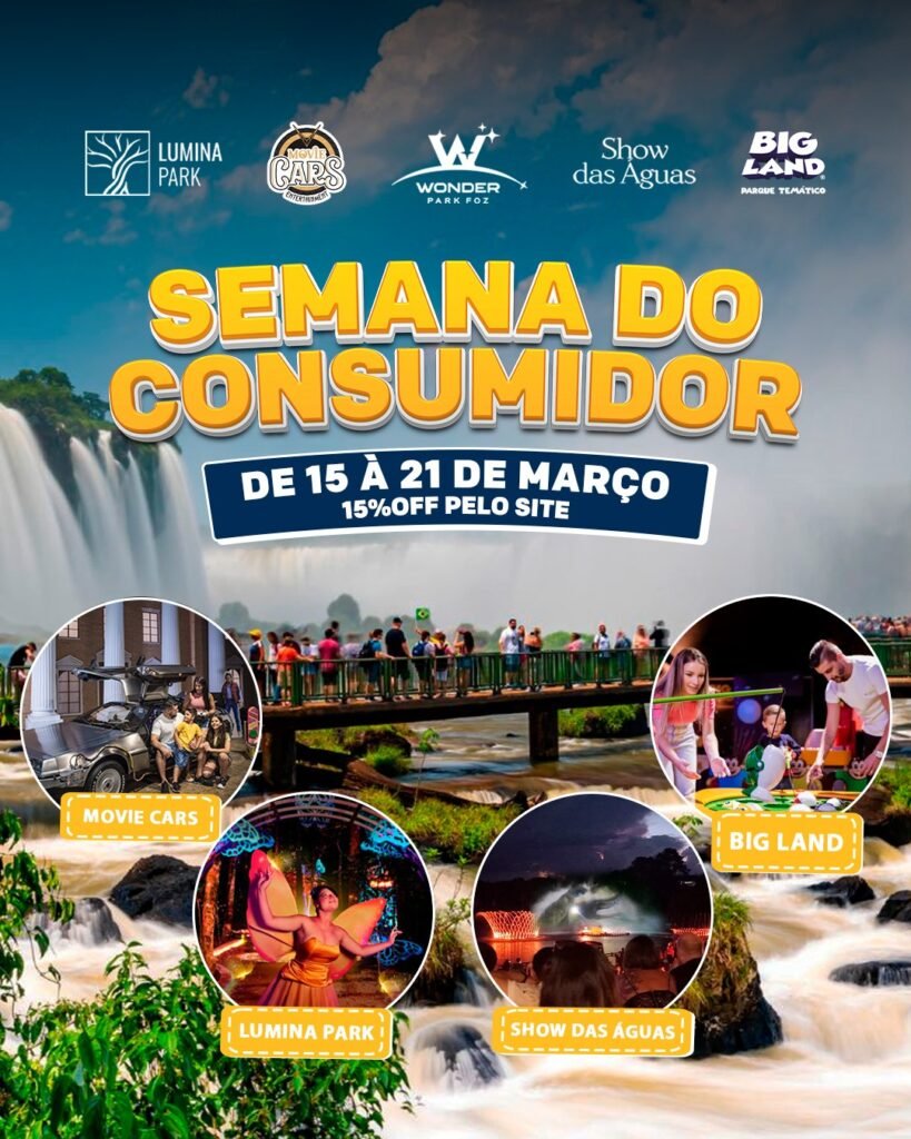 mês de março chega com oportunidade especial para turistas que desejam visitar um dos complexos de entretenimento mais completos de Foz do Iguaçu. O Wonder Park Foz promove, entre os dias 15 e 21 de março de 2026, a campanha “Semana do Consumidor”, oferecendo 15% de desconto na compra do Passaporte Wonder para turistas, exclusivamente pelo site oficial do parque.